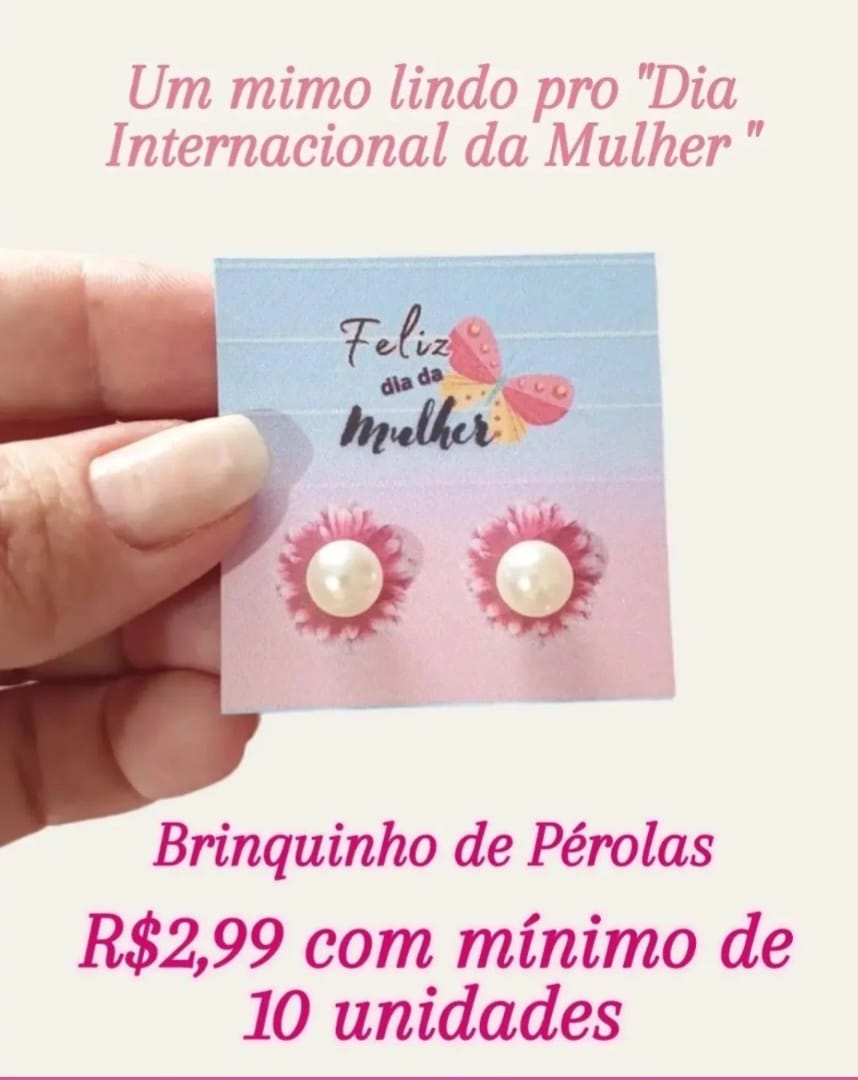 UM MIMO PERFEITO PARA O DIA DA MULHER. CARD COM UM PAR DE BRINCOS DE PÉROLAS.