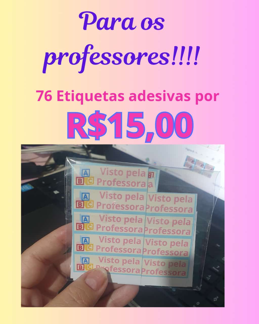 Etiquetas adesivas "Visto pela professora", com 75 unidades.