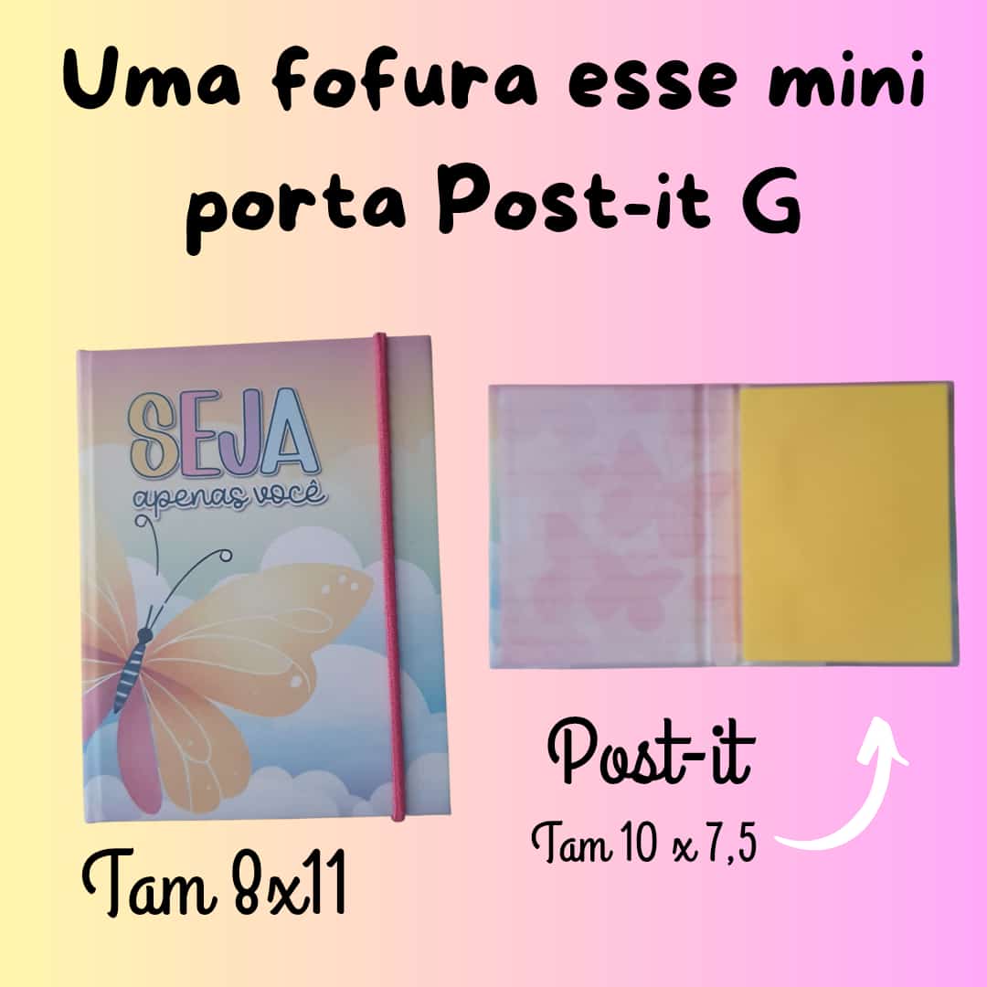 MINI PORTA POST-IT GRANDE TAM 7,7 X 10,2CM. CAPA DURA, LAMINADO COM BOPP FOSCO, TAM DO PORTA POST-IT 8X11CM, FECHAMETO COM ELÁSTICO. UMA FOFURA,