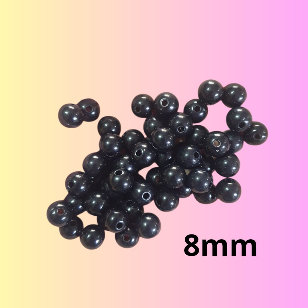 BOLINHAS DE RESINA, PASSANTE, PARA CRIAÇÃO DE SUAS PÇS. COR PRETA, TAM 8MM. VALOR REFERENTE A 10G.