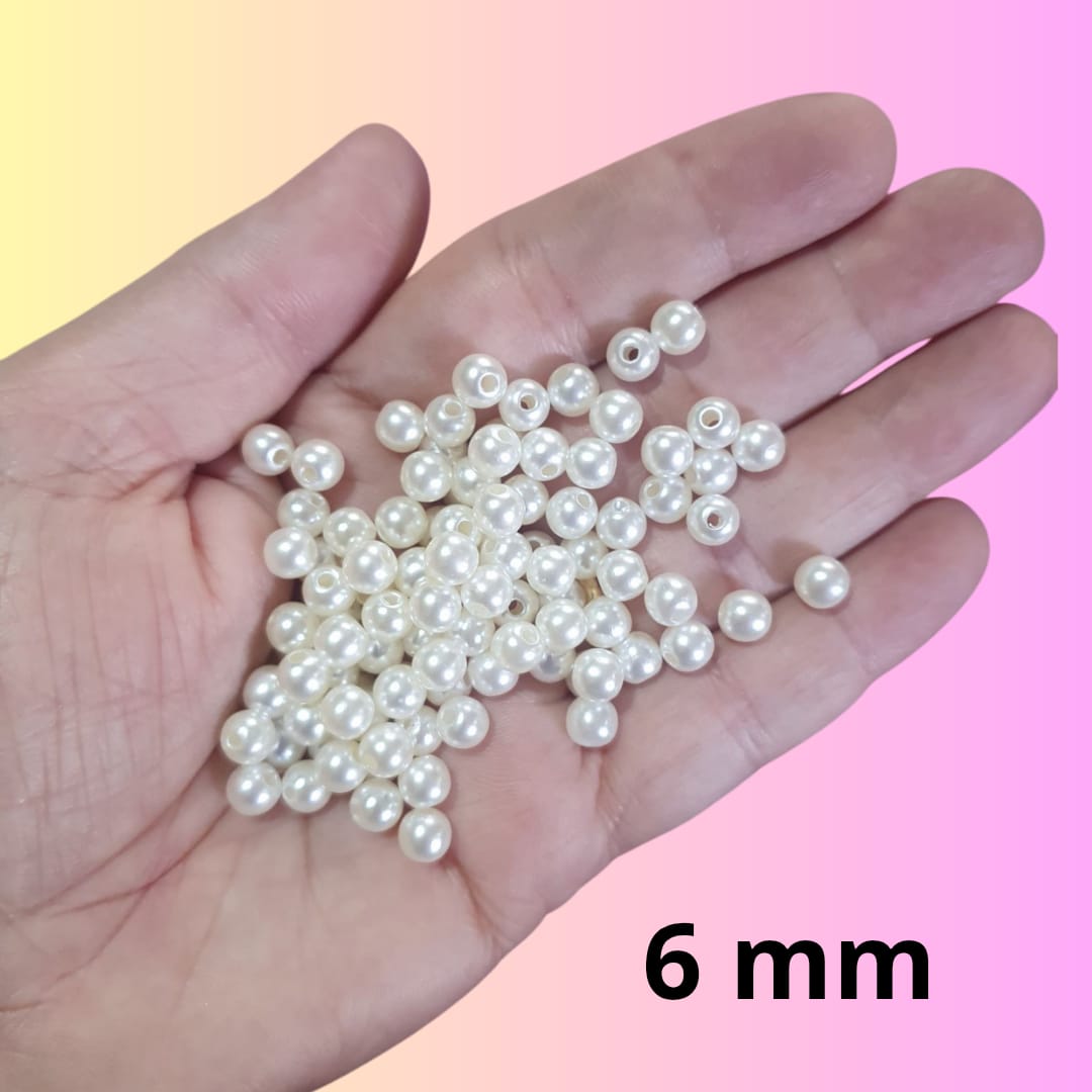 PÉROLAS ABS, PASSANTE, PARA CRIAÇÃO DE SUAS PÇS. CREME. TAM 6MM. VALOR REFERENTE A 10G.